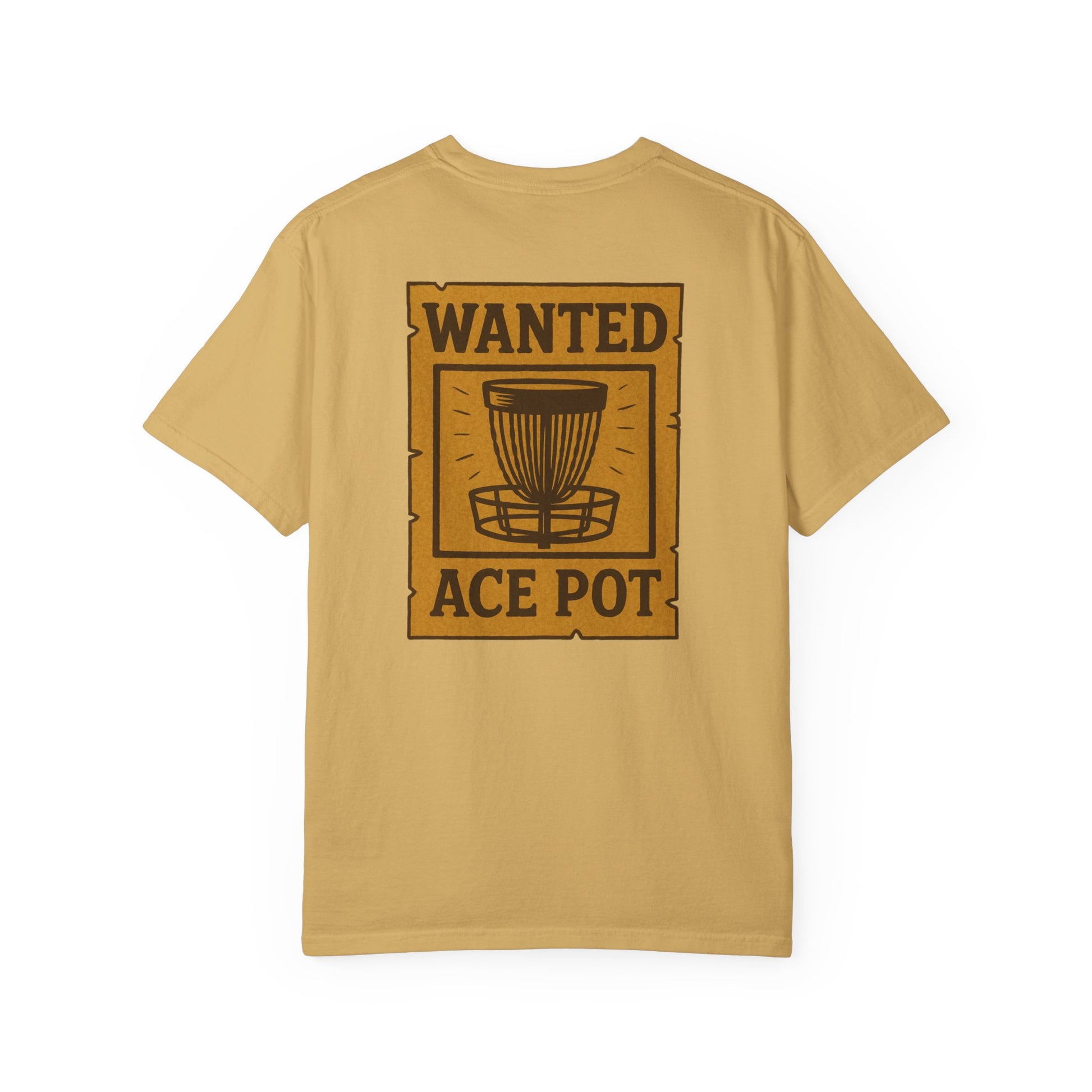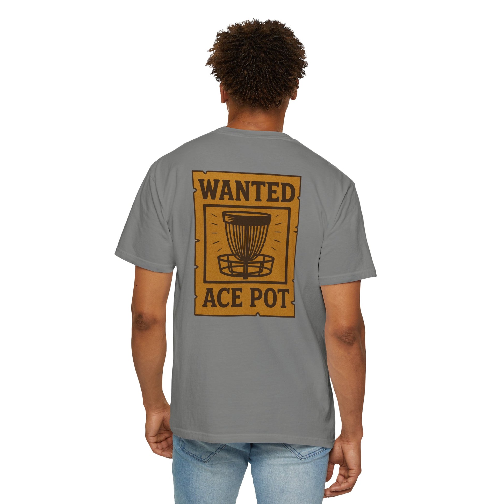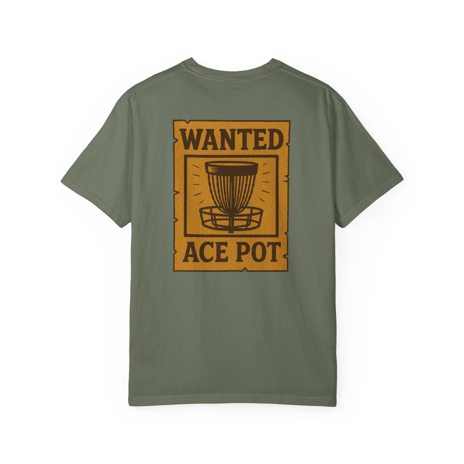 For the sharp-shooting disc golf outlaws, the “Wanted: Ace Pot” T-shirt is a bold statement piece featuring a Western-style wanted poster with a disc basket design. Made with soft, durable Comfort Colors fabric, this tee is perfect for league nights, ace runs, or everyday disc golf life. Target audience: disc golf enthusiasts, players who seek the elusive ace. Relevant for holidays and celebrations: disc golf league nights, tournaments, casual rounds with friends.